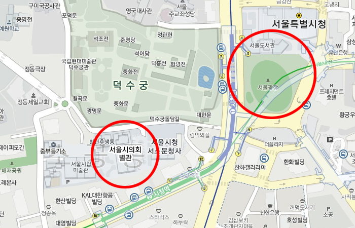 | 무대 | 서울광장 동편 재능교육 빌딩 맞은편 | 세미나장 | 서울시의회 별관 4층 강당(200석) |